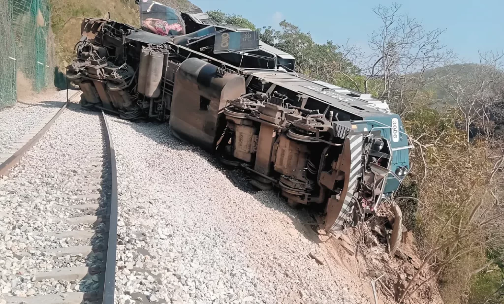 El Tren Interoceánico que salió de Oaxaca hacia Veracruz se descarriló en una curva, donde había evidentes fallas en la construcción con durmientes y fierros viejos, habilitados con pintura, además de piedra de segunda, no apta para garantizar la seguridad de los pasajeros.